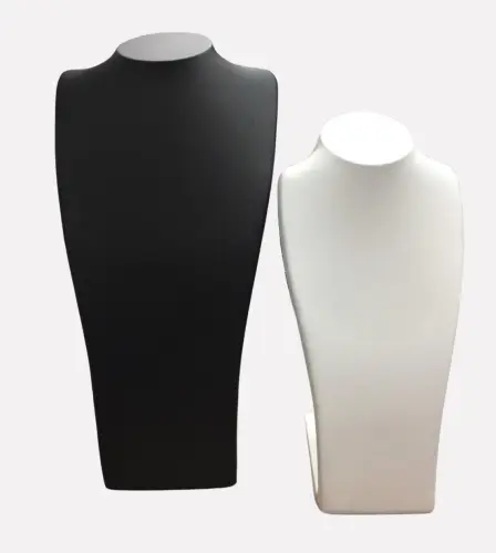 Tous nos supports colliers pendentifs vous permettent une mise en valeurs de vos bijoux à des tarifs exceptionnels. Vous avez le choix entre deux gammes de bustes vitrines, une entrée de gamme à des tarifs discount et une gamme de gainerie de qualité bijouterie joaillerie irréprochable.