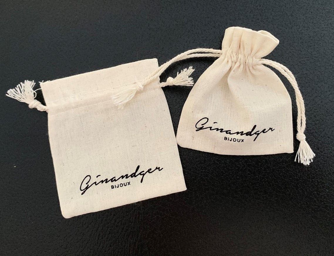 Pochettes en coton de couleur écru naturel avec cordon coton assorti.