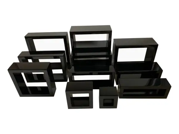 Ensemble de tablettes volumes pour vitrines de boutiques et bijouteries.